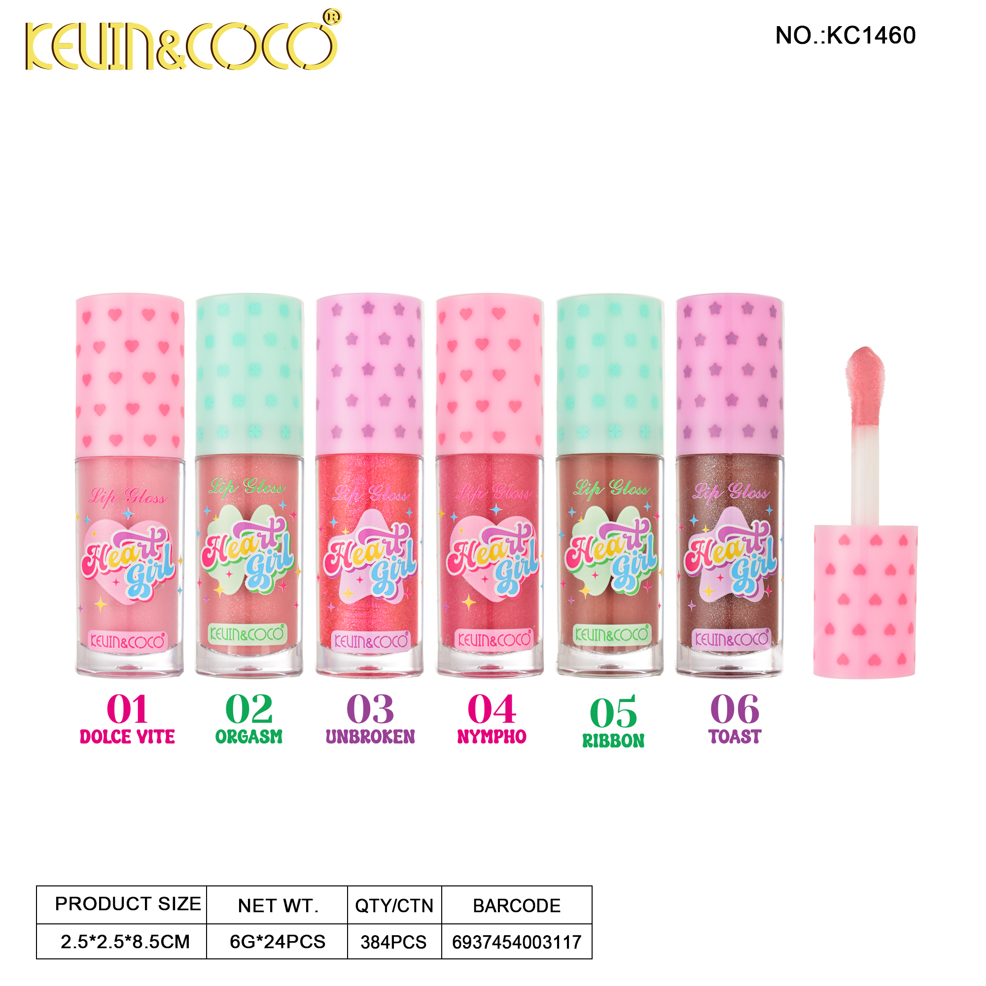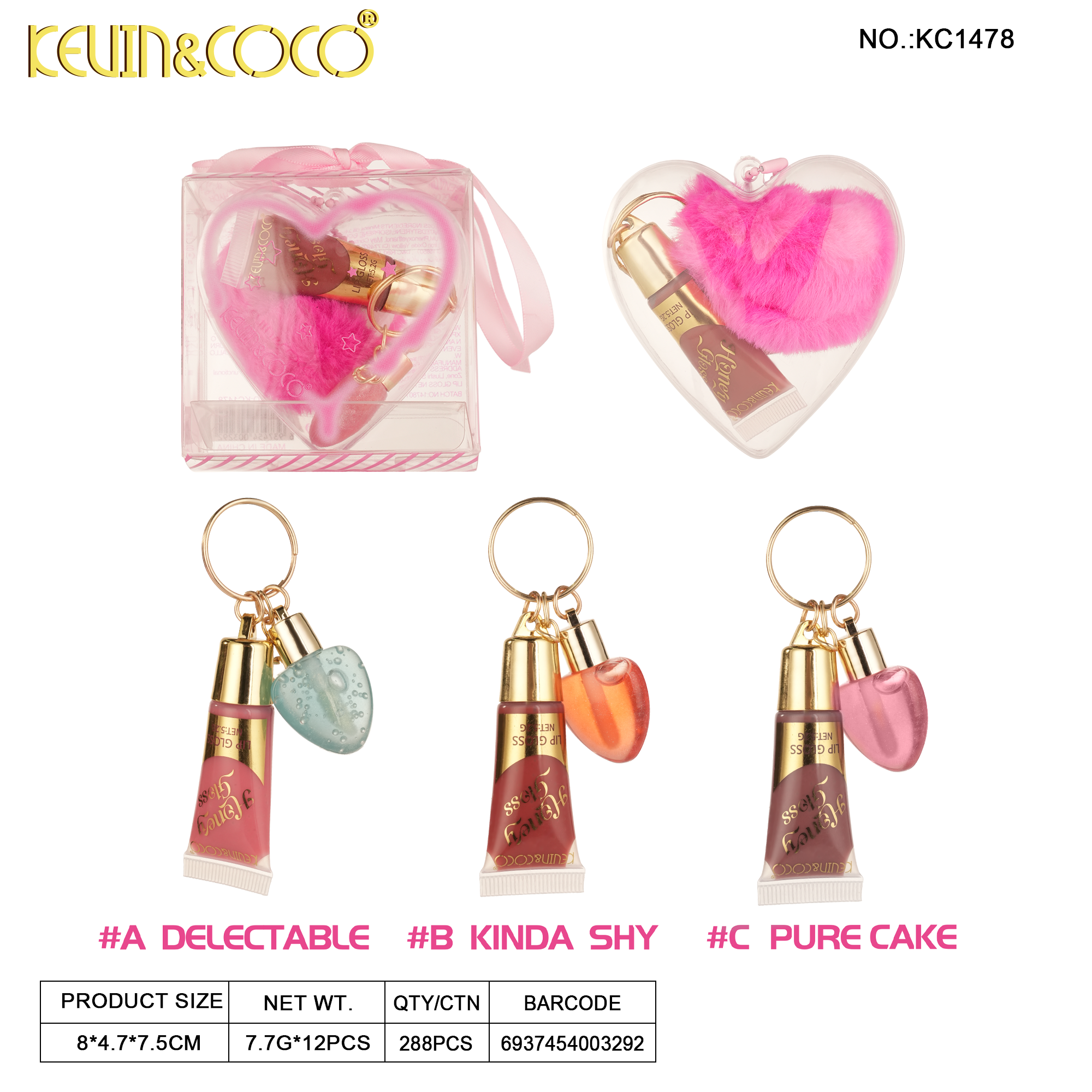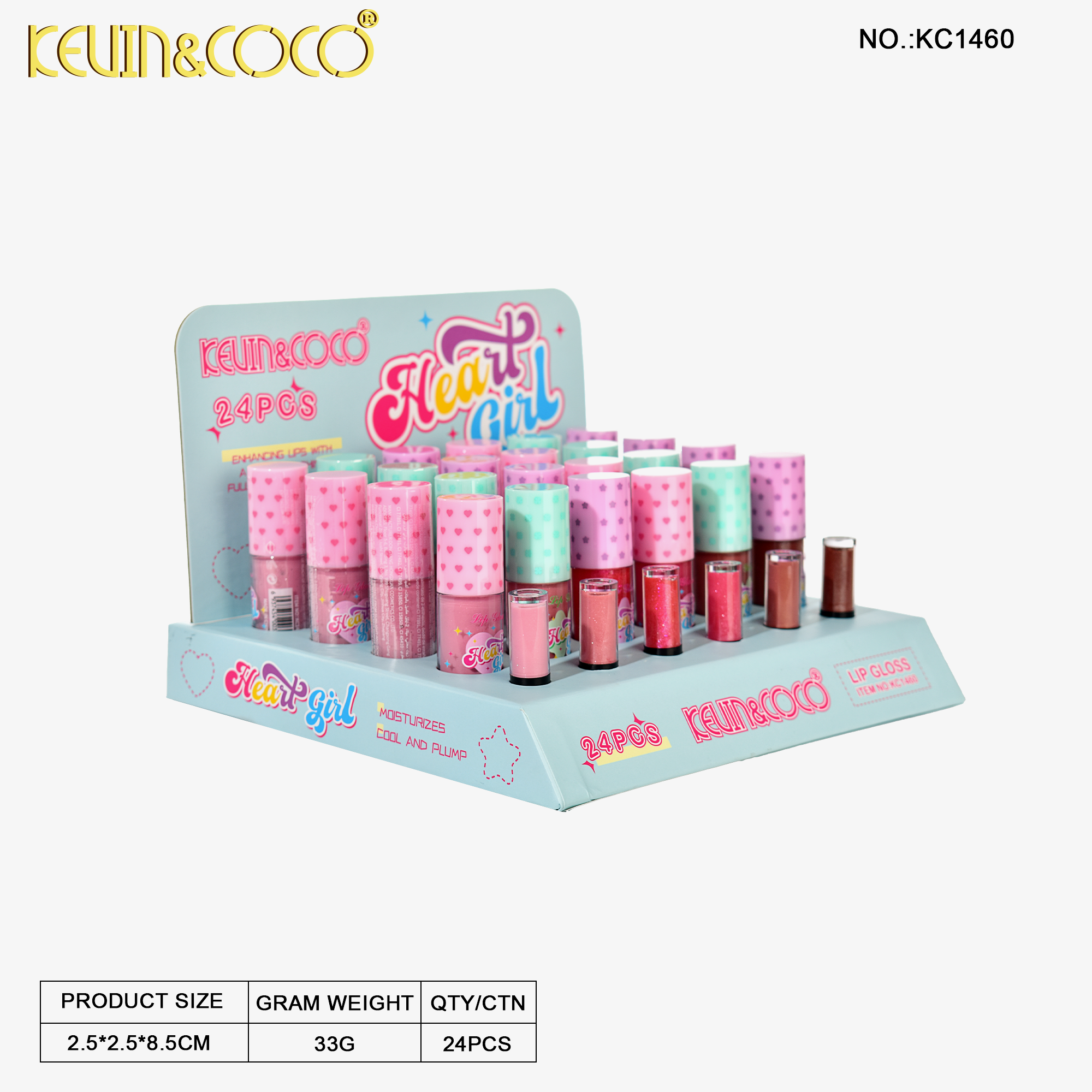 Honey Heart Sparkle Lip Gloss-24PCS(KC1460)