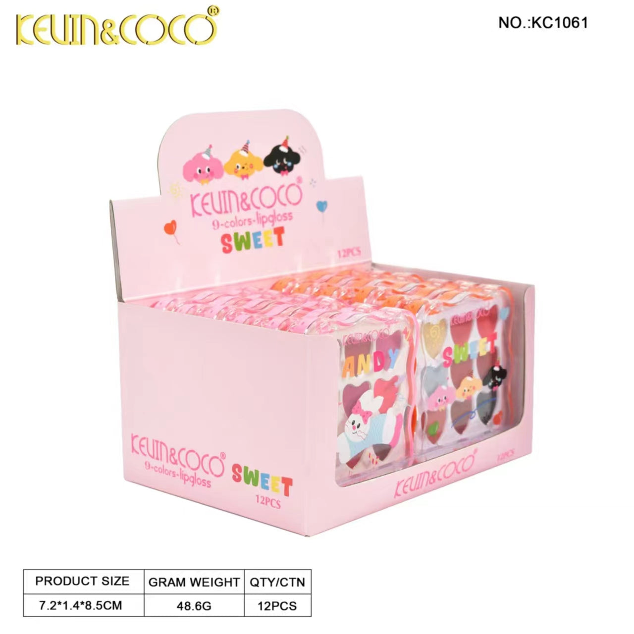 9-Color Heart Animal Candy Lip Cream display set - 12 pcs (KC1061)