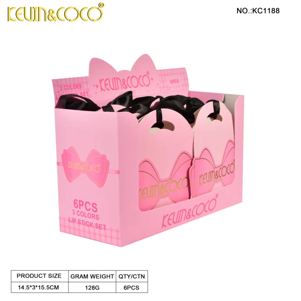 Bow-Tie 3-Piece Lipstick Set Display-6PCS(KC1188)